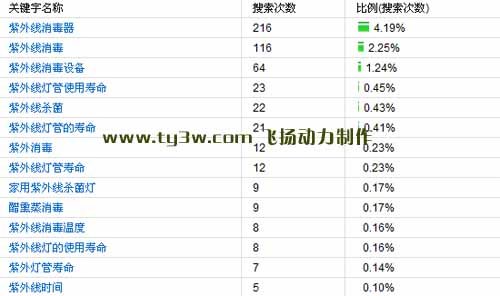 其中百度來源的關鍵詞主要有:(推廣詞為紫外線消毒和紫外線消毒器)